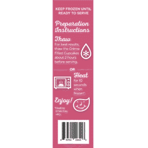 Thaw: For best results, thaw the creme filled cupcakes about 2 hours before serving or Heat: For 10 seconds when frozen (Heating times may vary). Enjoy! Keep frozen until ready to serve.