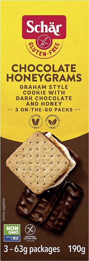 Free from wheat, preservatives and GMOs, these Schar gluten-free treats are made with real honey and 29% dark chocolate for a versatile food choice that everyone can enjoy. Schar Gluten Free chocolate-dipped graham cracker cookies taste just like the original for a delightful gluten-free treat that you don’t have to miss out on.
