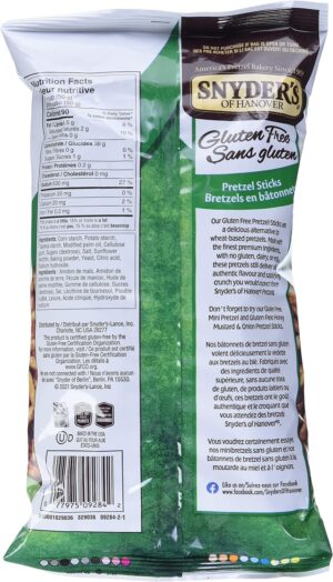 Made with the finest premium ingredients, with no gluten, dairy, or egg, these pretzels deliver all the authentic flavour and satisfying crunch you would expect from Snyder’s of Hanover® Pretzels. Pair these gluten-free pretzels with hummus, cheese, or your favourite dip for an easy and delicious gluten-free snack.